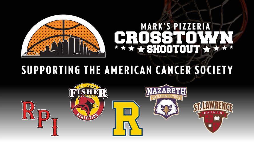 The Mark's Pizzeria Crosstown Shootout brings together Men's and Women's basketball teams from the University of Rochester, Nazareth University, St. John Fisher University, RPI, and St. Lawrence University to compete for "bragging rights' in the Rochester area. More importantly, to heighten awareness and raise money for the American Cancer Society. In it's 7th year of existence, the tournament has raised over $90,000 for the ACS. This year's tournament will be held on November 21st and 22nd, with the Women's tournament being played at St. John Fisher University and the Men's tournament at Nazareth University.
